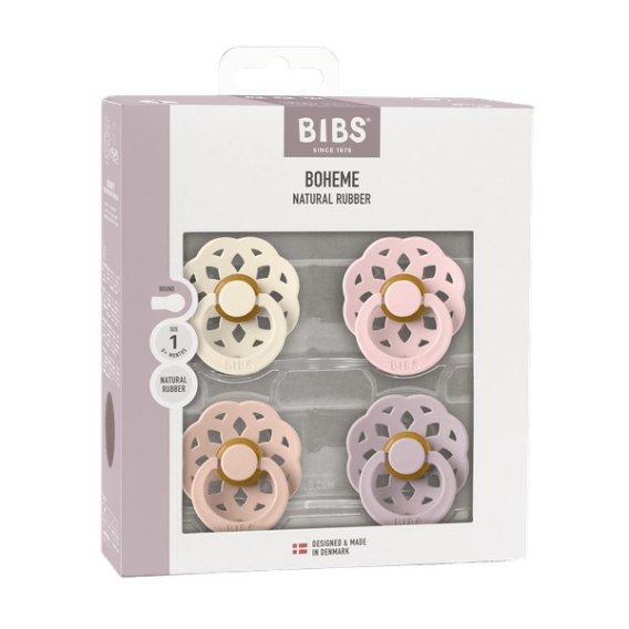BIBS BOHEME ROUND zestaw 4 szt smoczków niemowlęcych, roz 0-6 mca