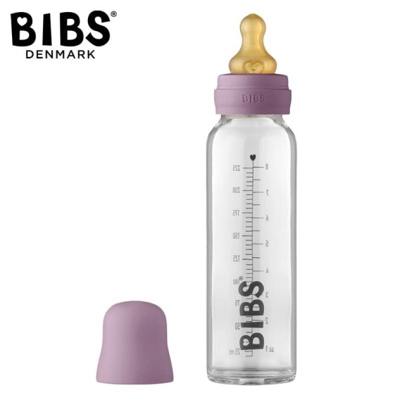 BIBS BUTELKA SZKLANA ze smoczkiem antykolkowym z kauczuku poj 225 ml MAUVE