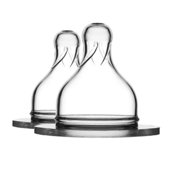 2 x antykolkowy smoczek o wolnym przepływie z silikonu medycznego