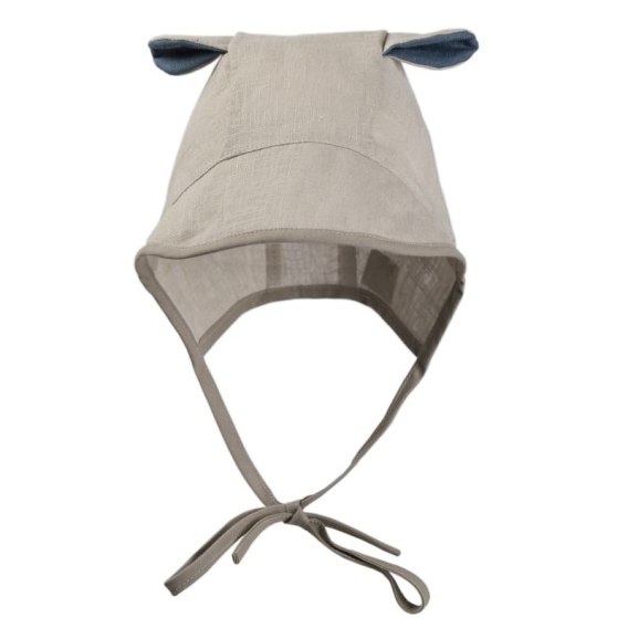 Przepiękna bonetka przeciwsłoneczna z daszkiem i słodkimi uszami misia w stylu BOHO wykonana ze 100% BIO organicznej przędzy lnianej.