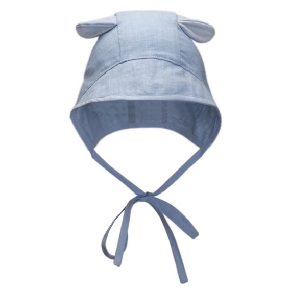 Hi Little One bonetka niemowlęca z daszkiem i uszkami BOHO LEO Light Blue roz S Pom Pom
