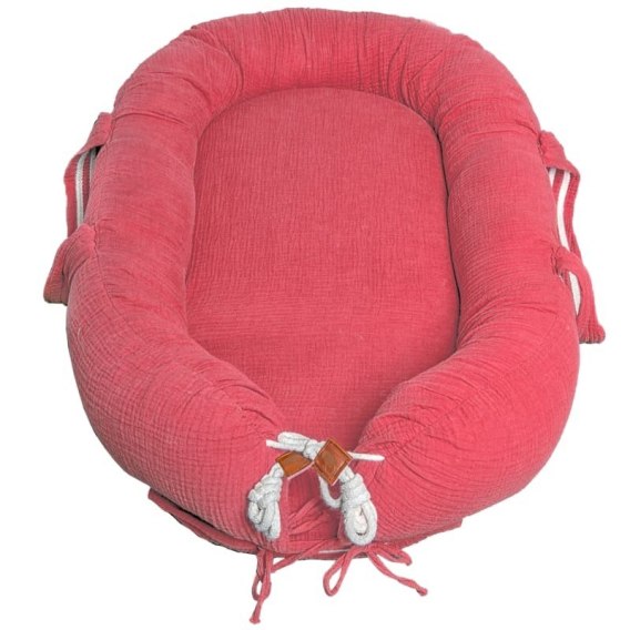 Hi Little One kokon gniazdko dla Noworodka z organicznego oddychającego BIO muślinu Coral