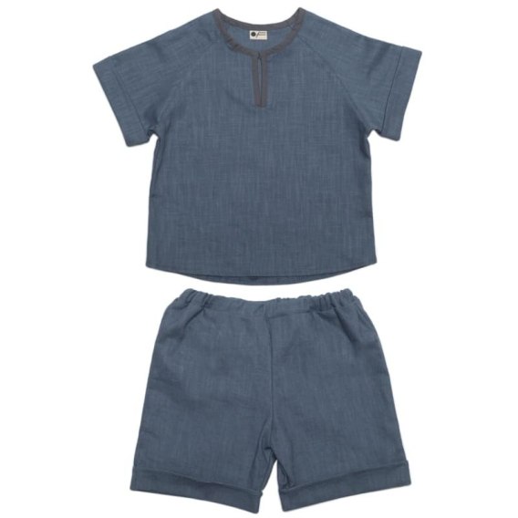 Przewiewny komplet w stylu BOHO składający się z koszulki i spodenek szortów, wykonany ze 1OO % organicznego BIO lnu najwyższej jakości.