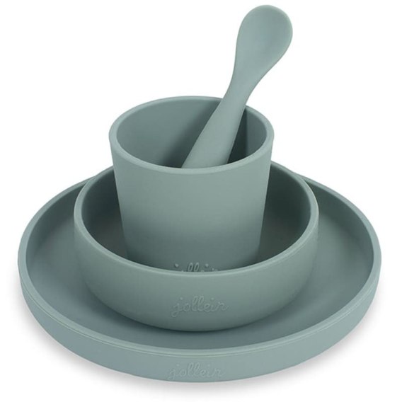 Jollein silikonowa zastawa do nauki samodzielnego jedzenia 4 el Ash Green