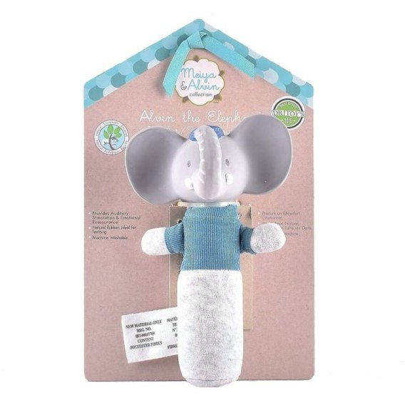 Meiya & Alvin - Grzechotka miękka z gryzakiem z organicznego kauczuku Hevea Alvin Elephant