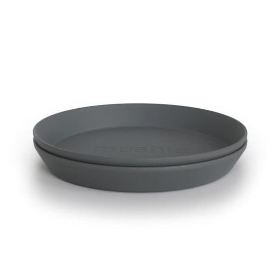 Przepiękne płaskie talerzyki z kolekcji Mushie, które idealnie pasują do silikonowych śliniaków Mushie.