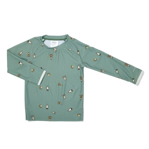 Koszulka ma długie rękawy i idealnie pasuje do szortów kąpielowych i czapeczki przeciwsłonecznej Space Light Green.