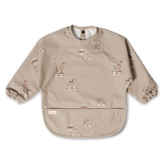 Nuuroo śliniak fartuszek z rękawami i kieszonką wodoodporny TRAIN Cream Carnival