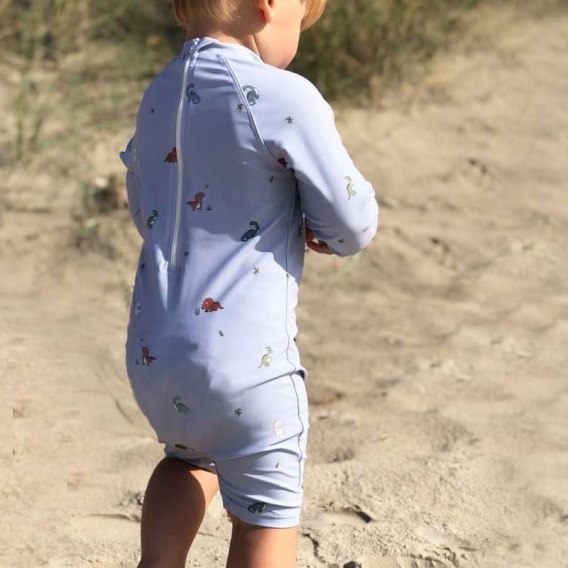 Kombinezon kąpielowy z ochroną przeciwsłoneczną skóry dziecka o współczynniku UV 50+.