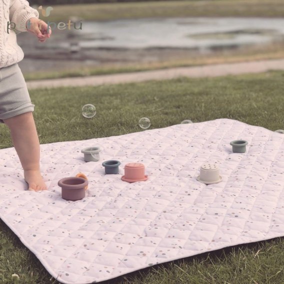 Miękka i miła w dotyku, przepiękna, pikowana mata do zabawy dla dzieci.