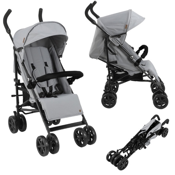Maksymalny ciężar to 22 kg na siedzisko. Posiada regulowane oparcie i osłonę przeciwsłoneczną. W zestawie ochronny daszek oraz kosz na